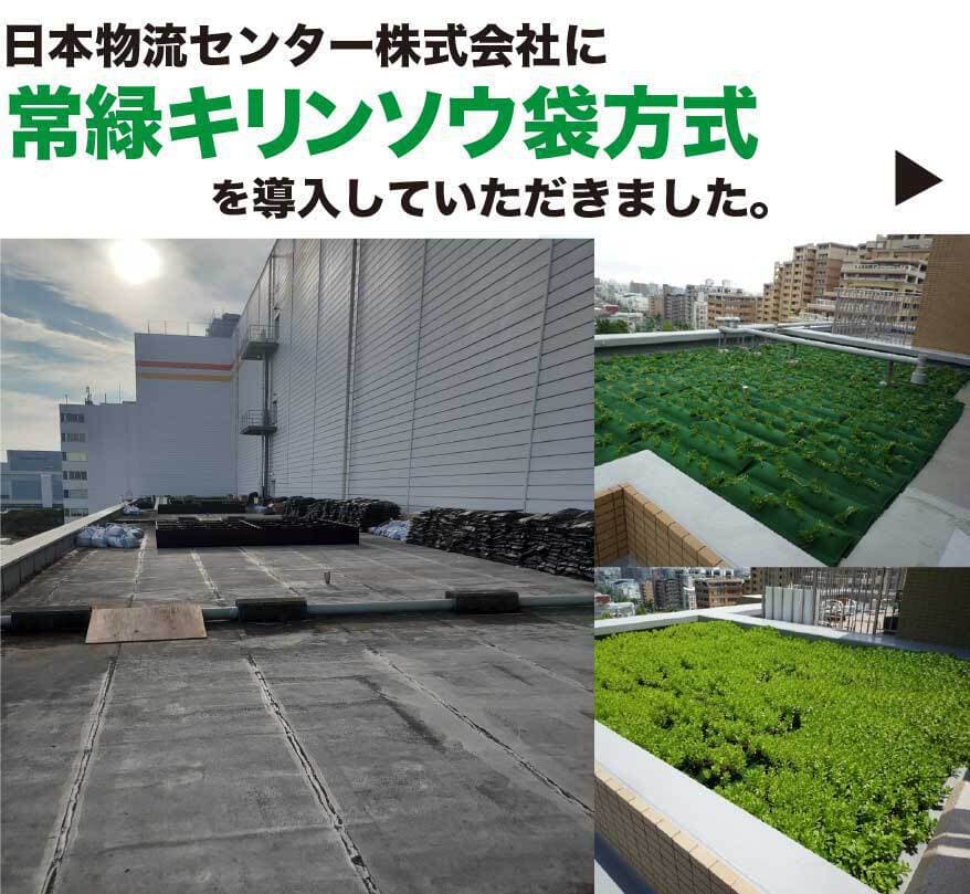 常緑キリンソウ袋方式(FTM バッグ)を建屋の屋根上面に